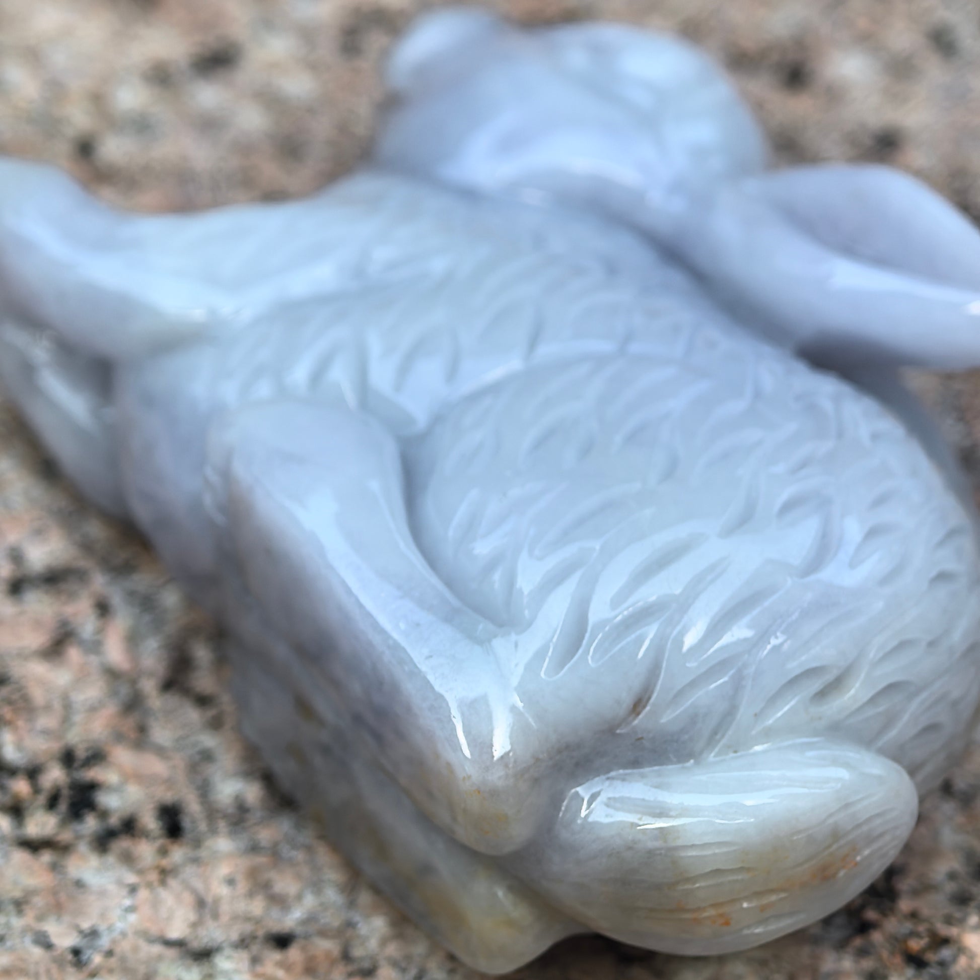 - 3D carved jadeite rabbit figurine with detailed fur texture and a smooth, stable base for display