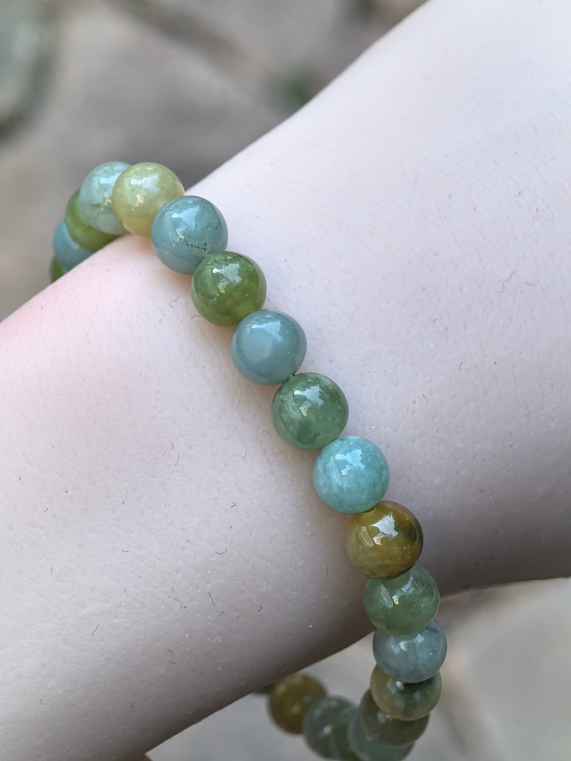 - Round jadeite beads on elastic bracelet cord