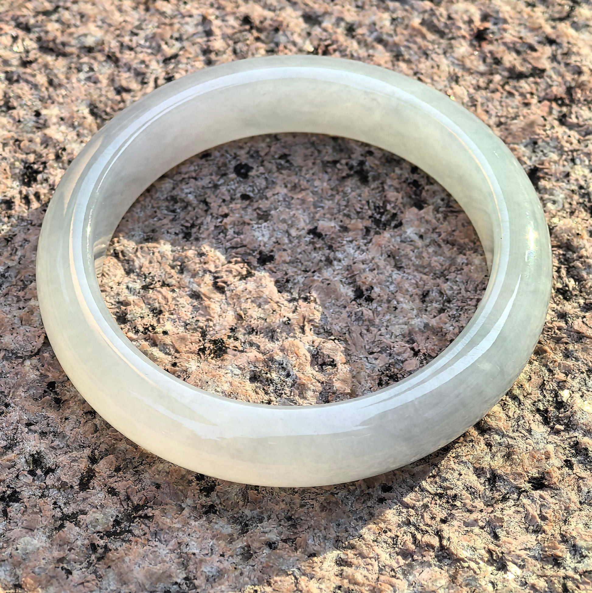 - Classic D-shape jadeite bangle (flat inner side, rounded outer side) with a smooth, polished finish for comfortable daily wear