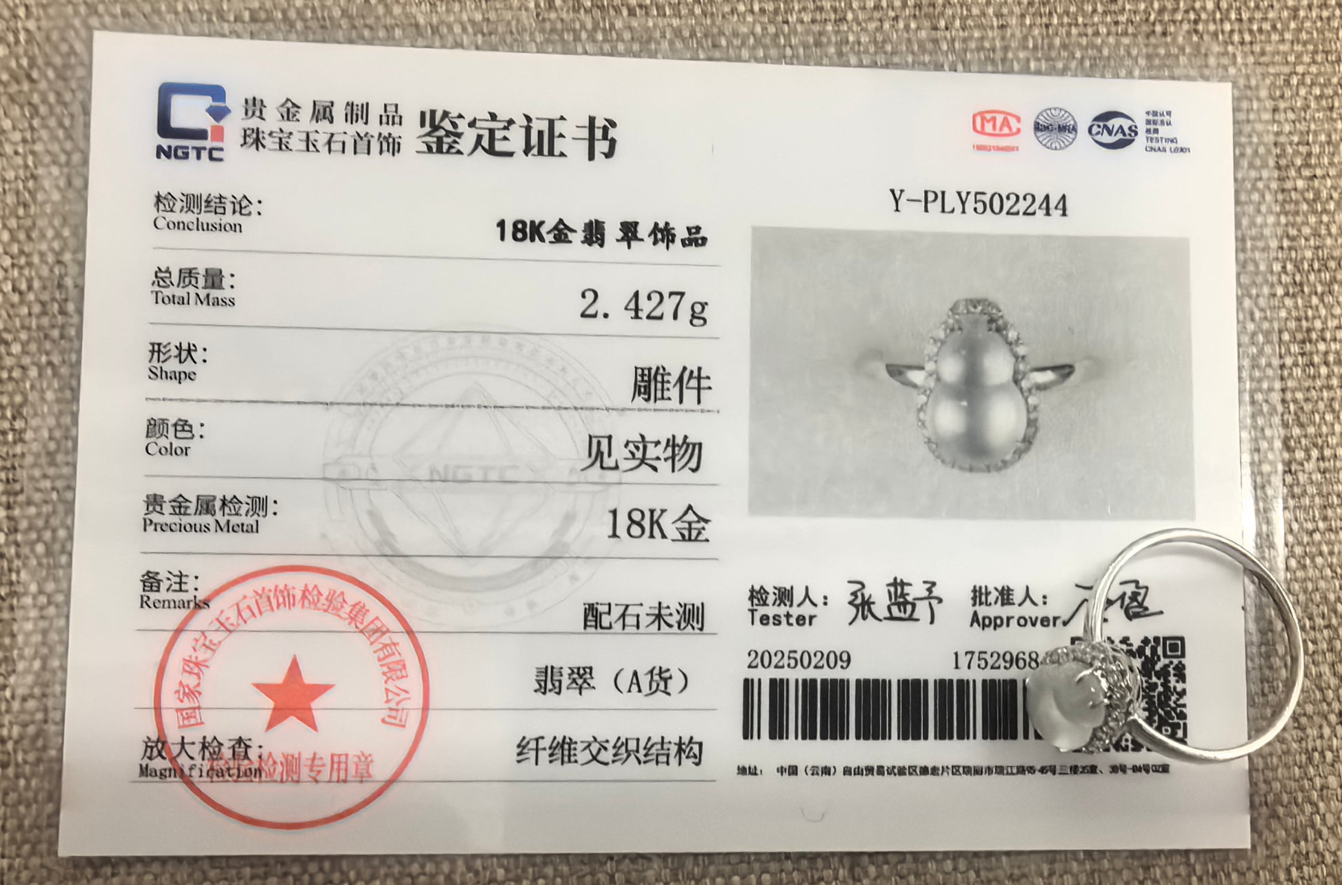 NGTC (National Gem Testing Center) is China’s national authority for gemstone and jadeite testing.