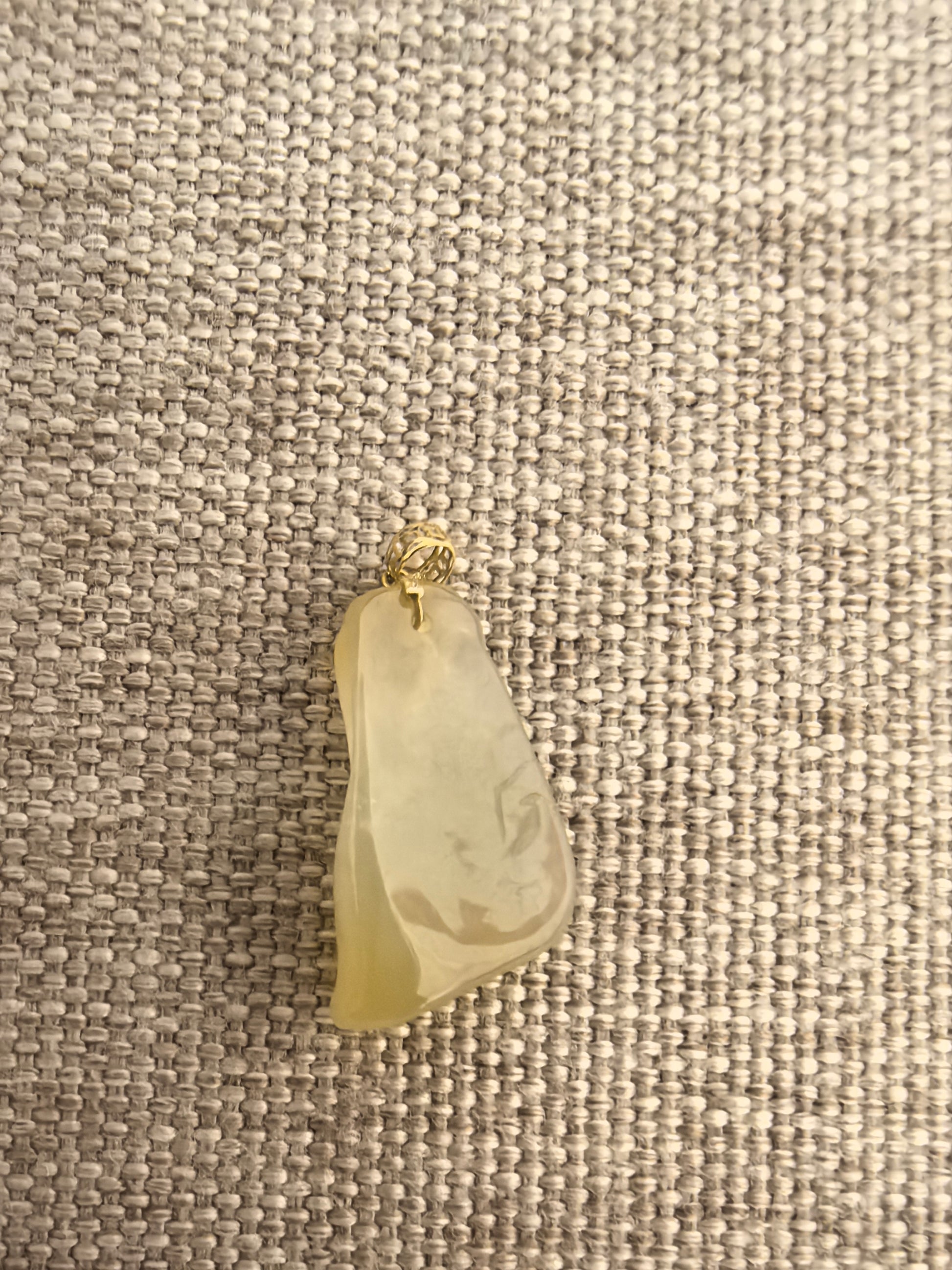 This natural Grade-A Burmese jadeite pendant features an icy yellow tone with a soft honey glow and gentle translucency. The overall look is clean and bright, with a refined, glassy luster that catches light beautifully.