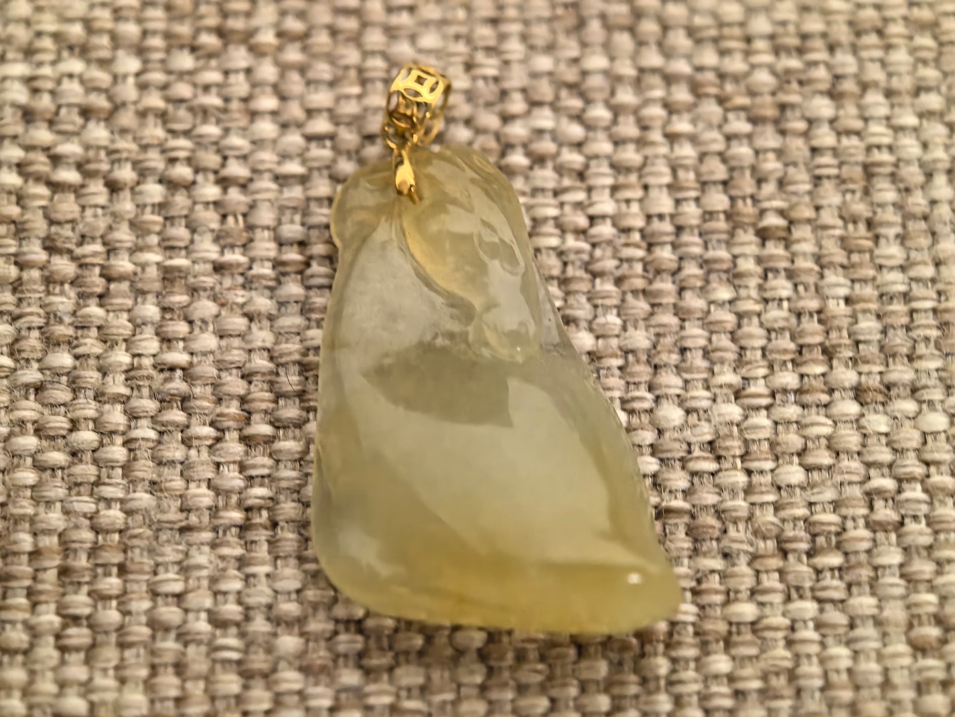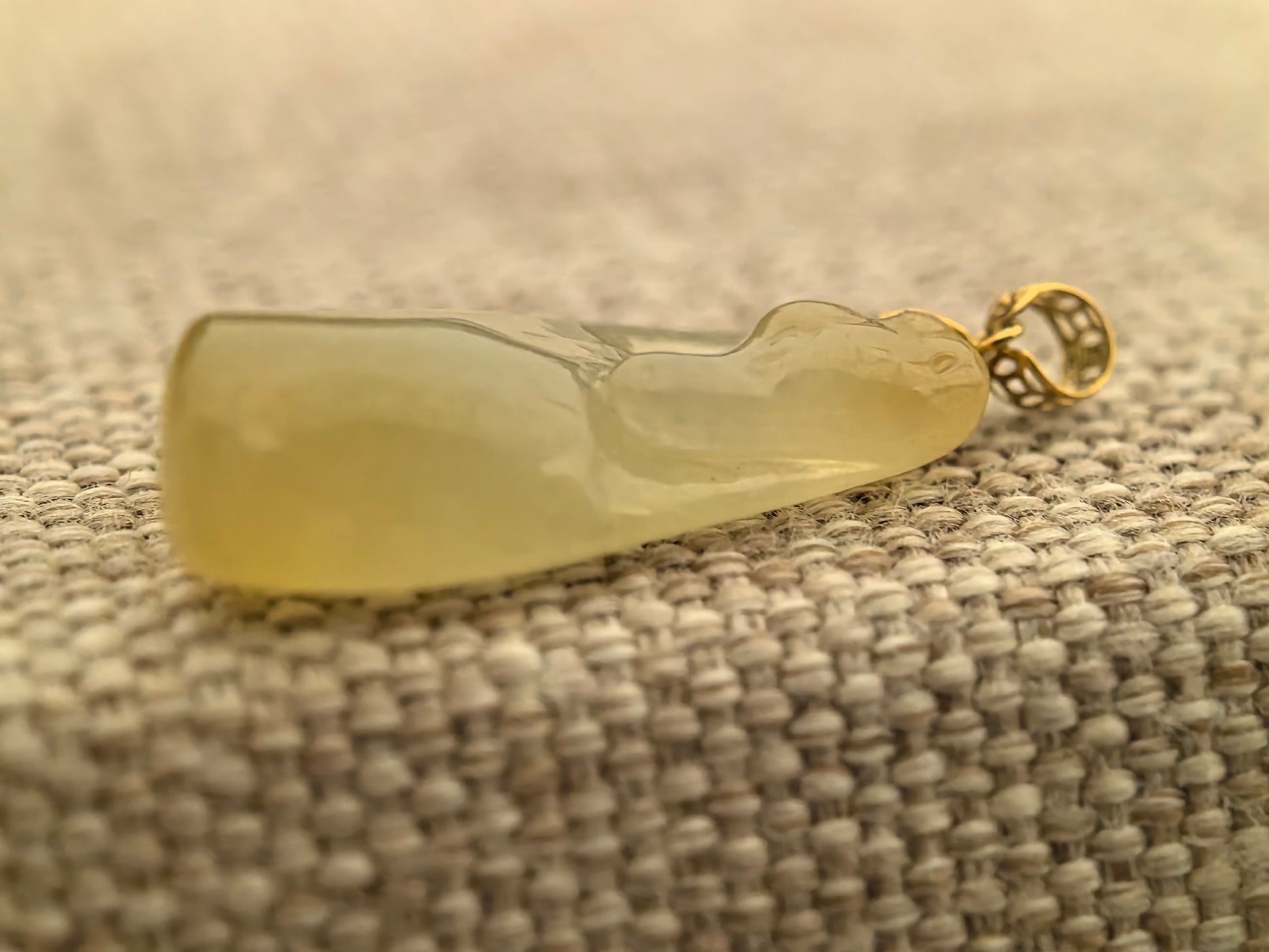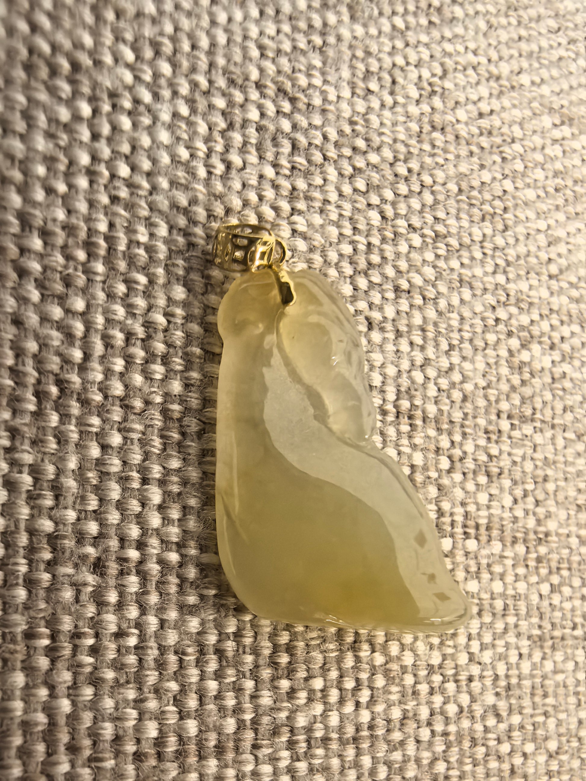 Natural Grade-A Jadeite Icy Yellow Horse Head Pendant with 18K Gold Bail · Burmese Jade