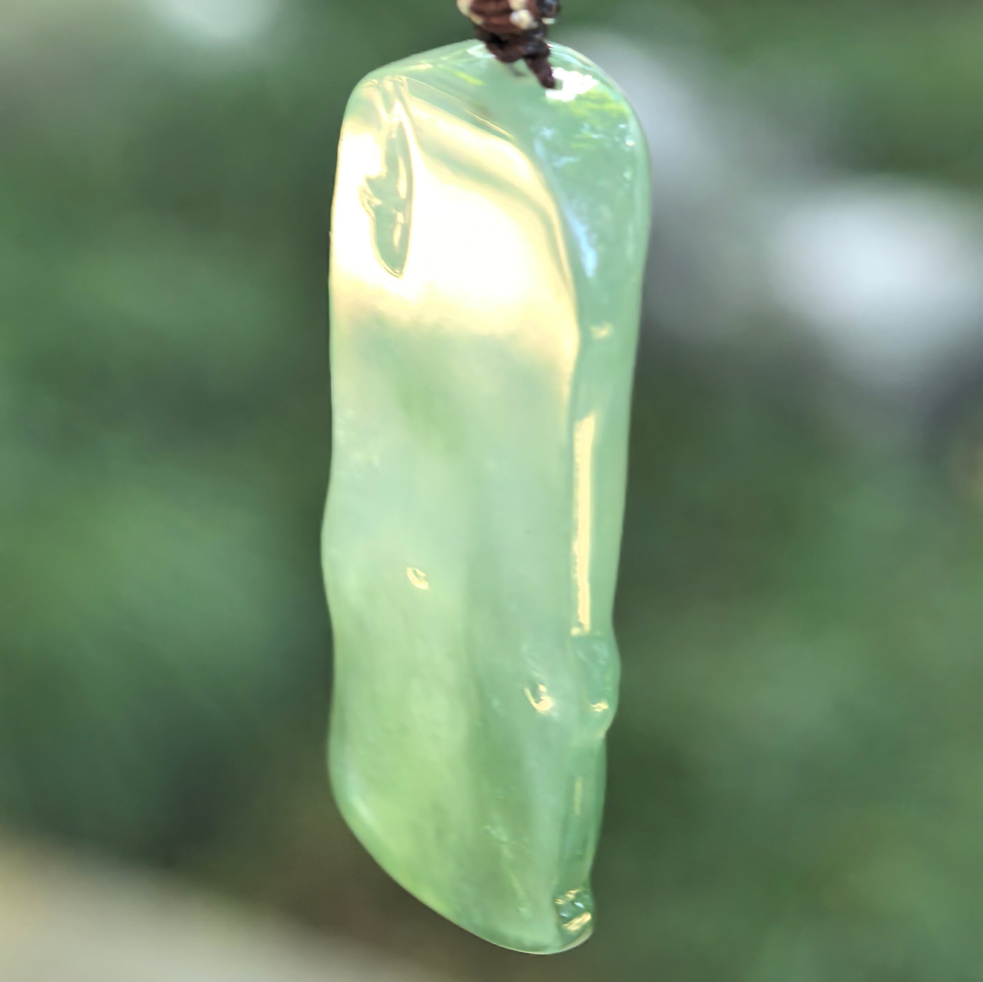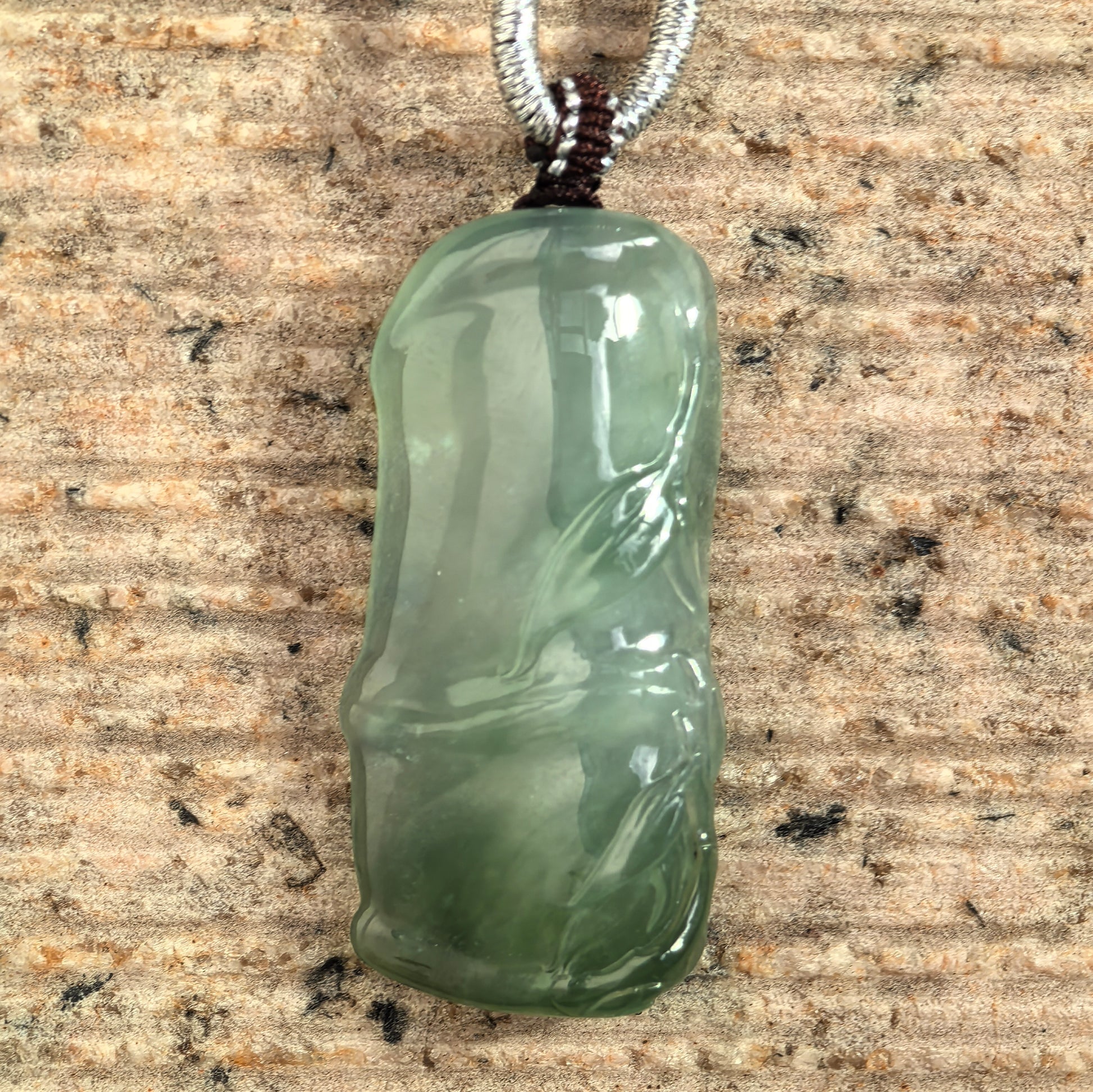 Natural Grade-A Jadeite Icy Translucent Green Bamboo Pendant · Burmese Jade