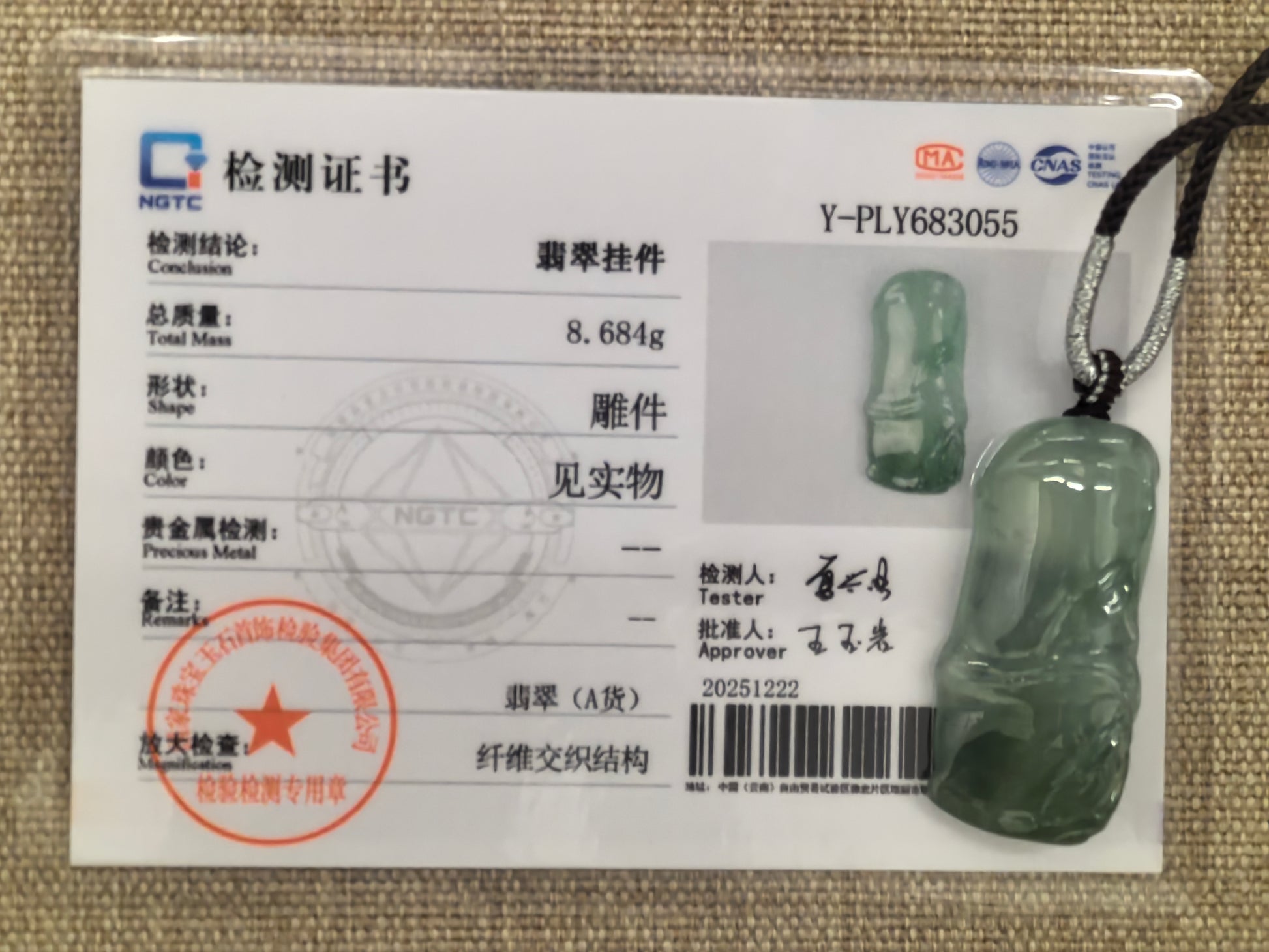 - Total weight: 8.684 g, as marked on the original NGTC certificate for this pendant