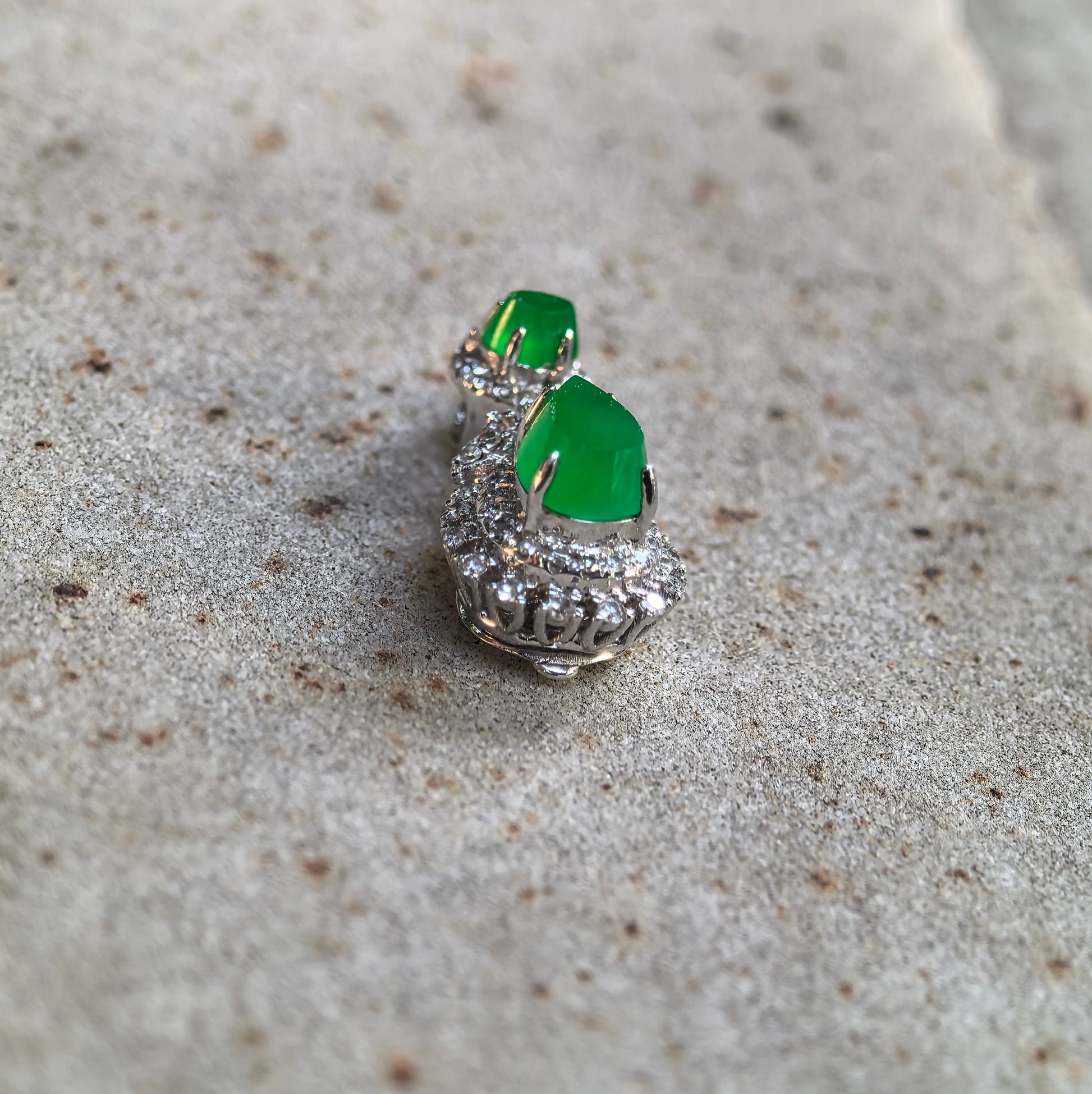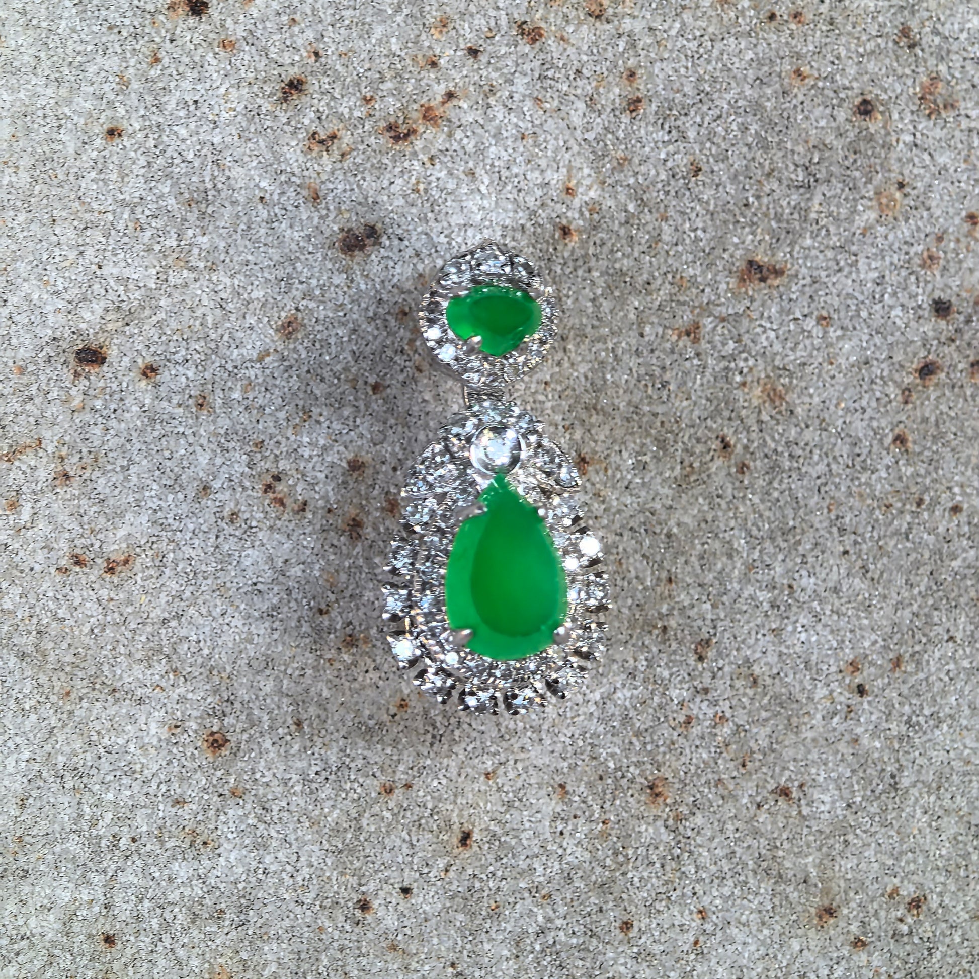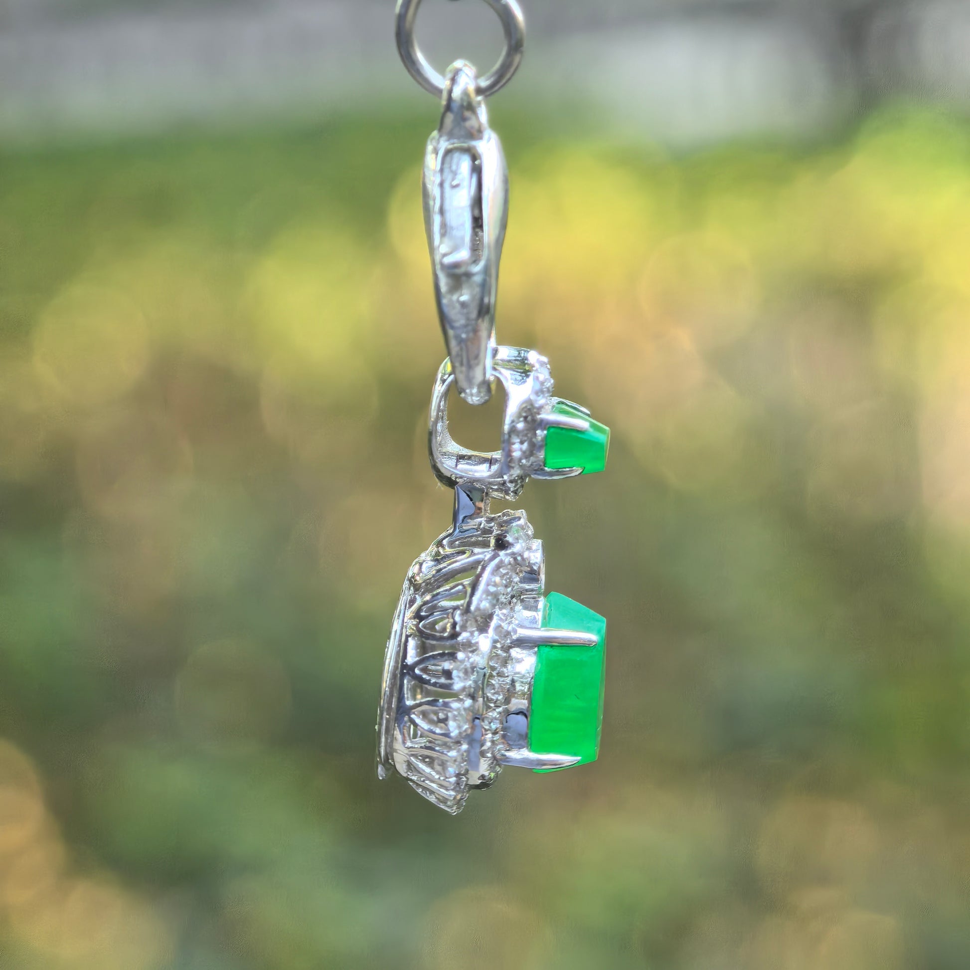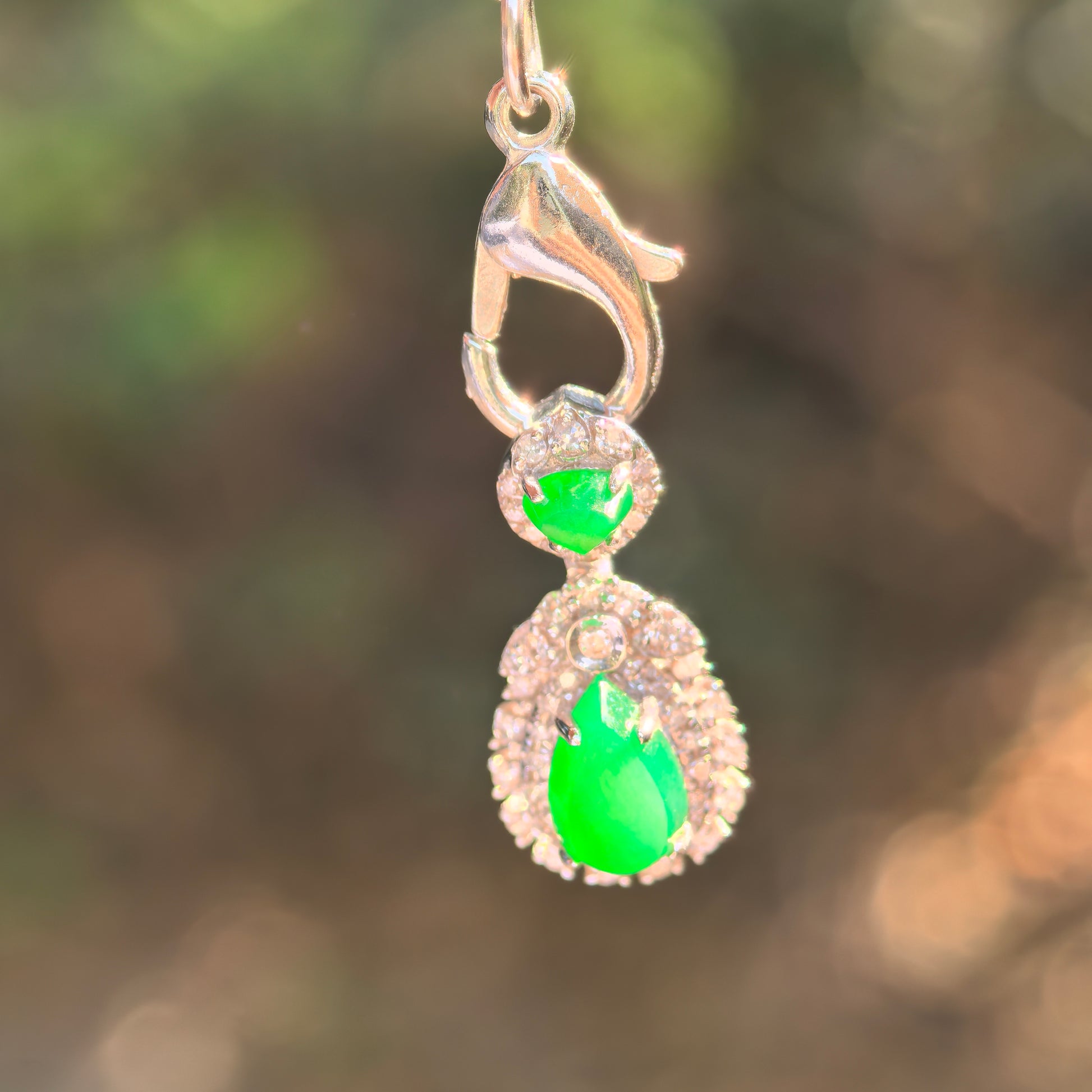 - Teardrop drop pendant featuring an imperial green jadeite center with a faceted profile