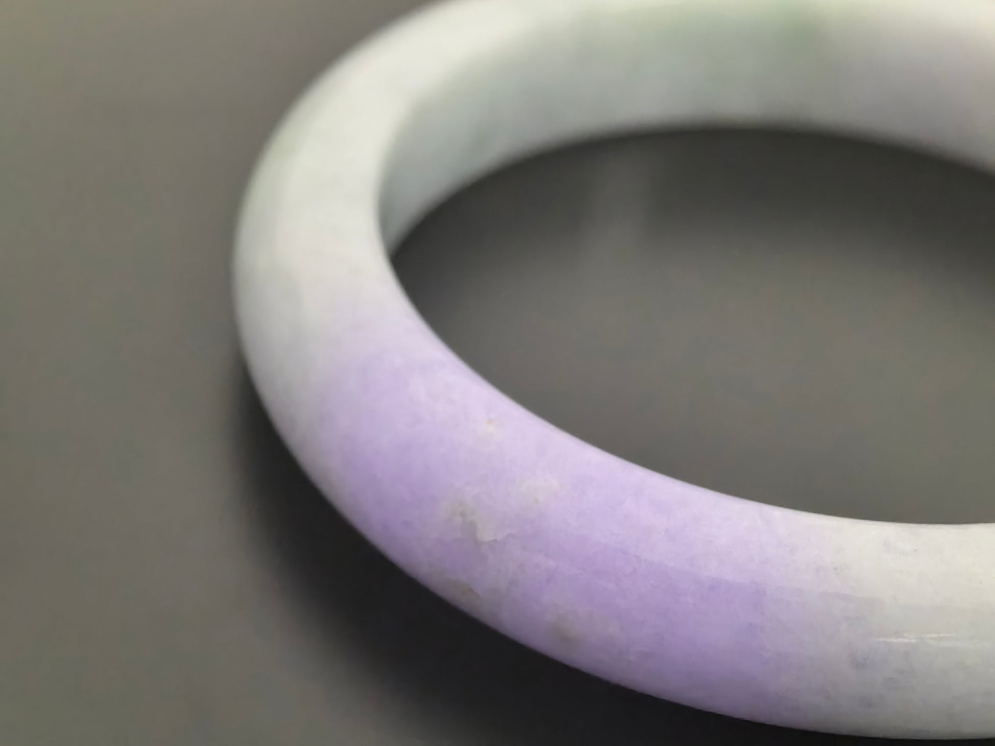 There are some natural speckled mineral spots and growth texture typical of untreated jadeite, but no structural cracks. If you like subtle lavender on a calm green base and prefer a comfortable everyday NGTC-certified piece, this bangle is a refined, versatile choice.