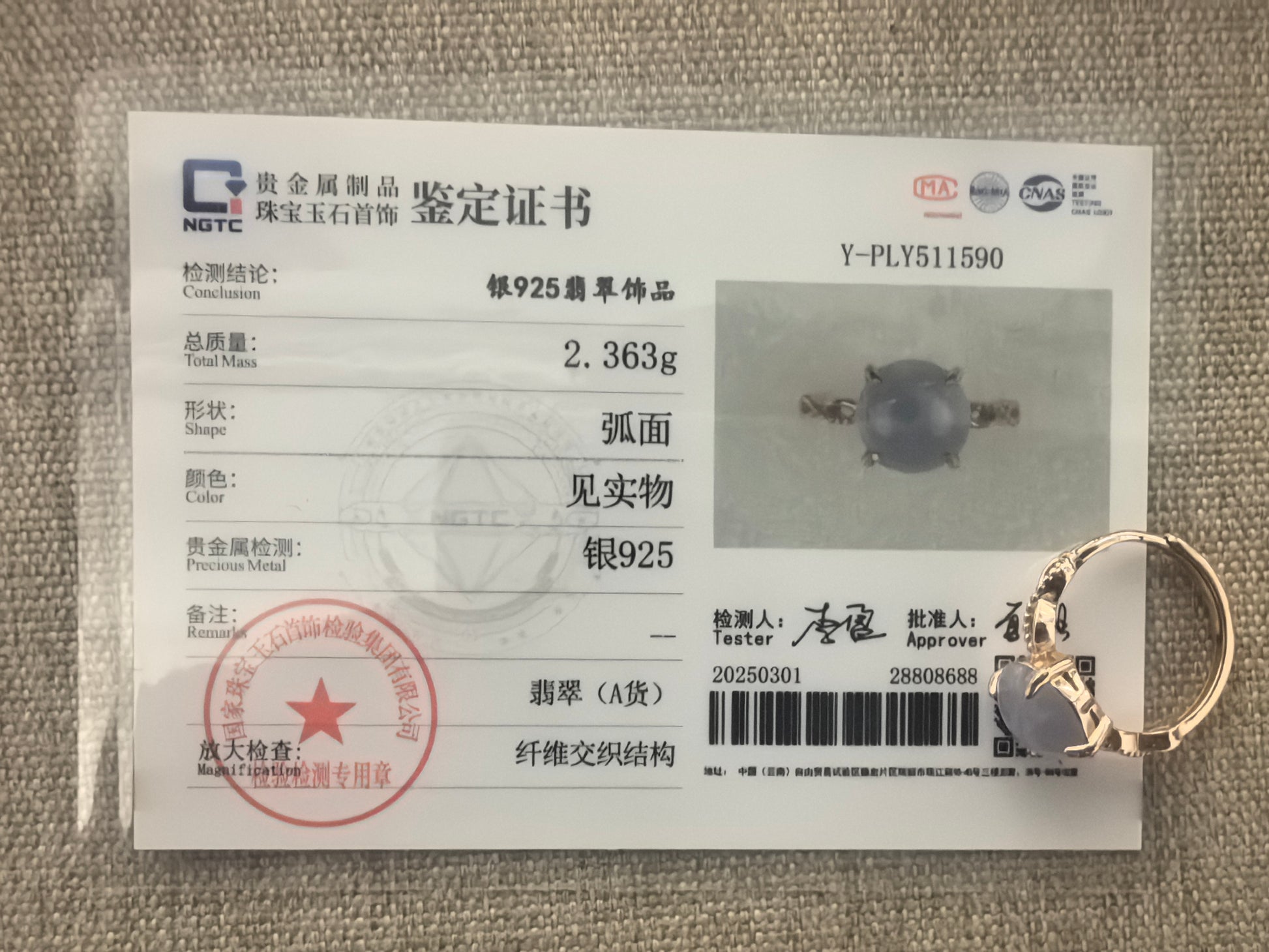 100% natural grade-A Burmese jadeite ring, certified by NGTC for guaranteed authenticity.