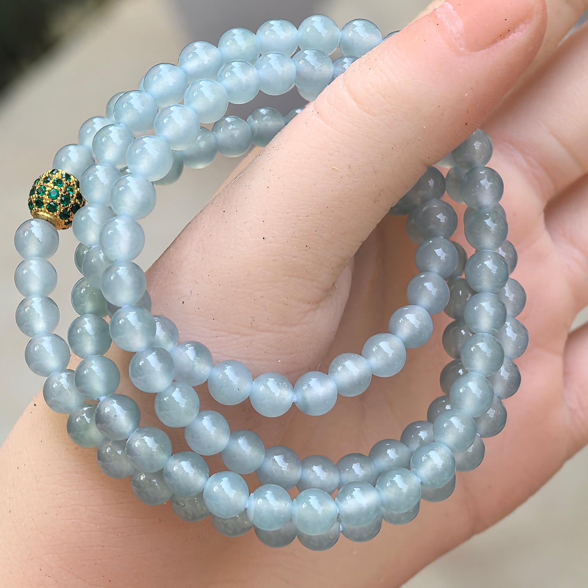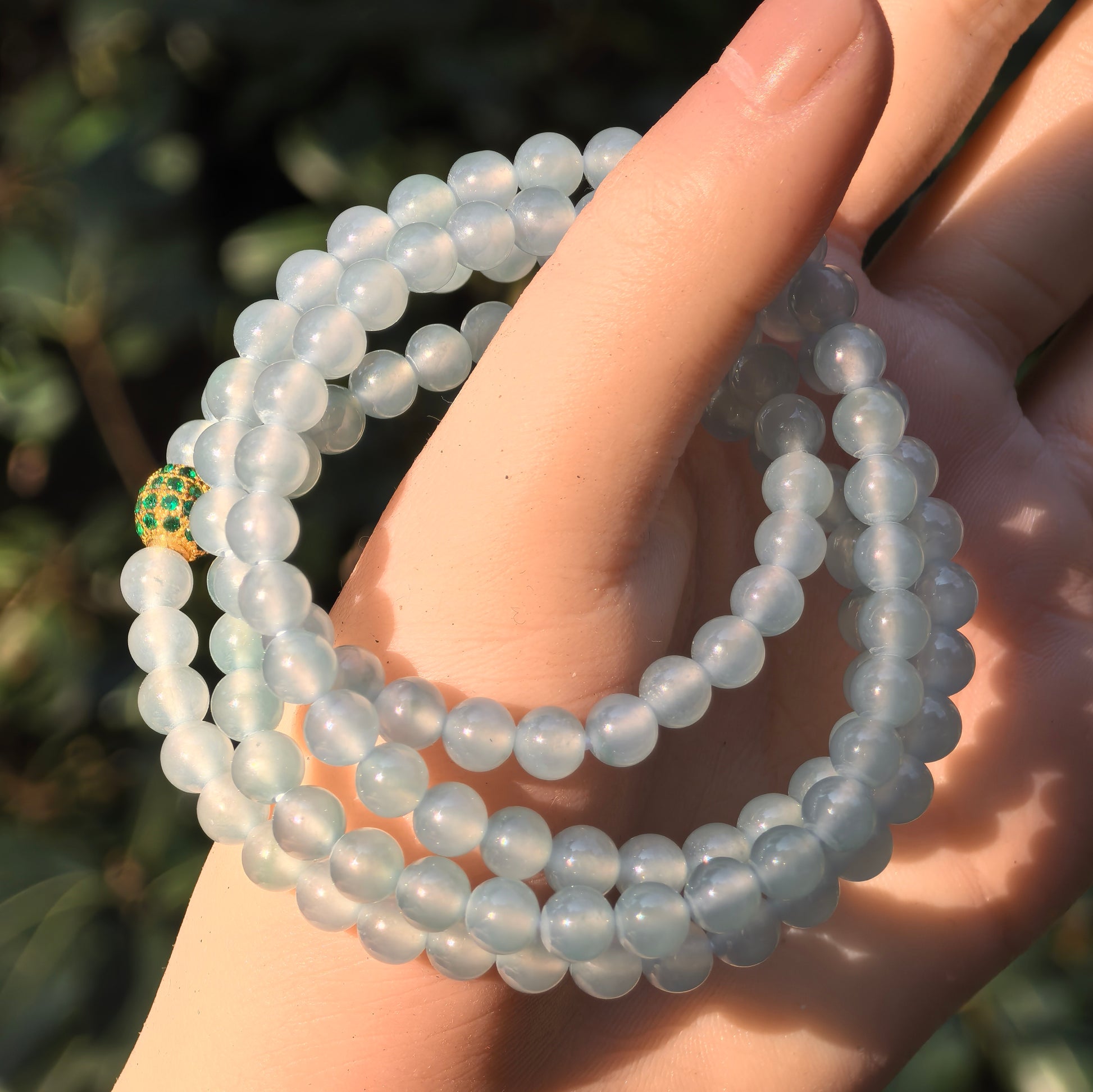 Natural Grade-A Jadeite Icy Translucent Bead Multi-Wrap Strand · Burmese Jade 5.8mm