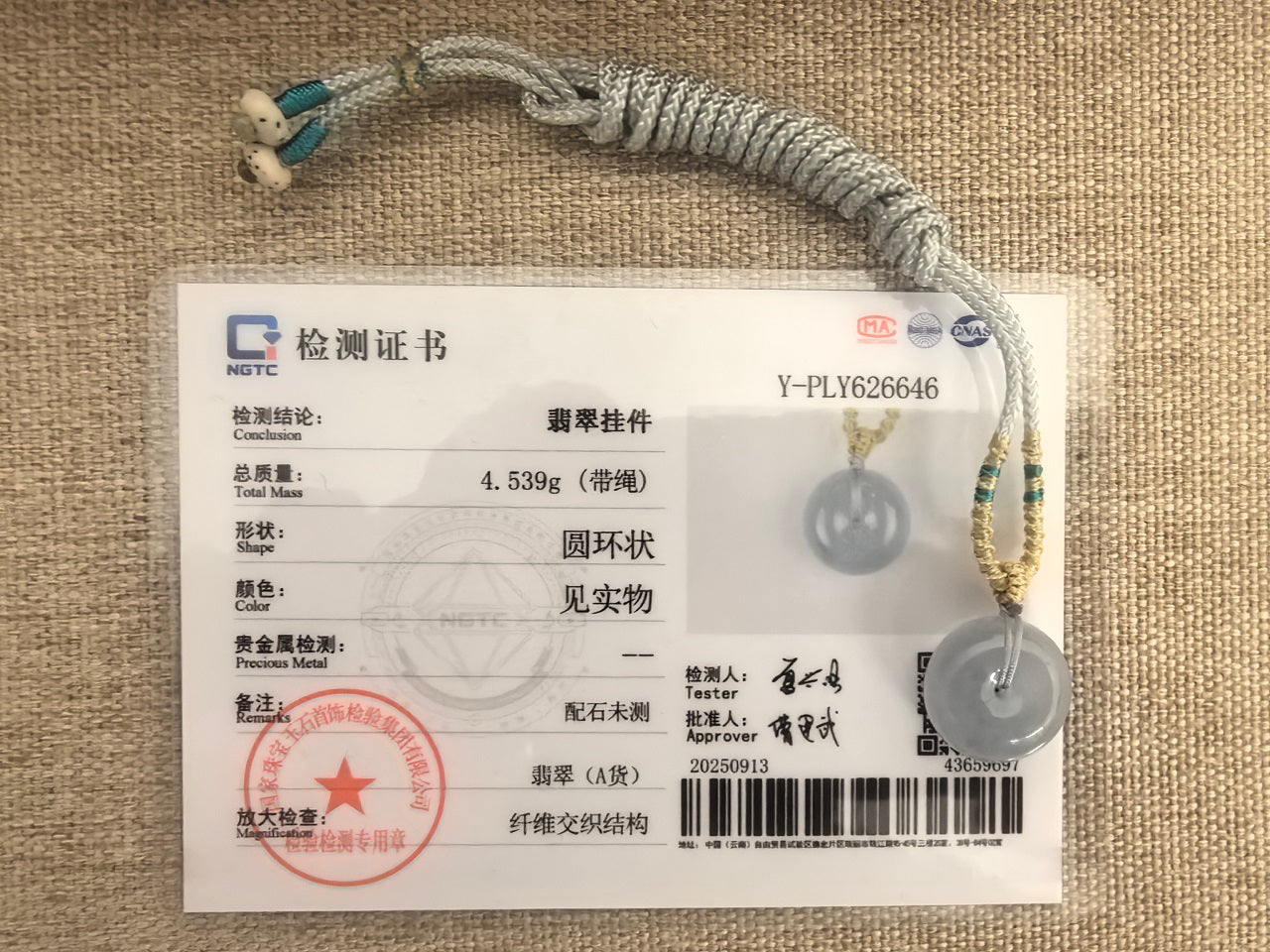 All jade pieces from CuiJuan Jadeite are authenticated by NGTC, ensuring they are natural, untreated Grade-A Burmese jadeite.