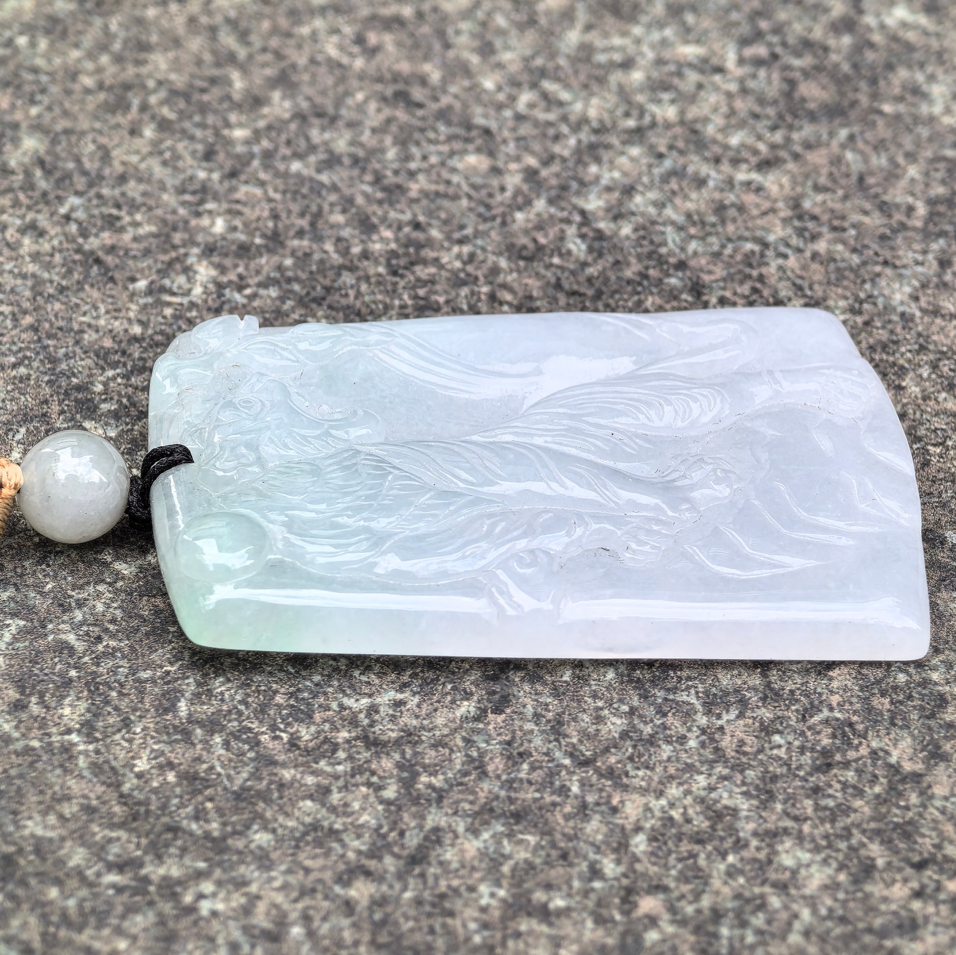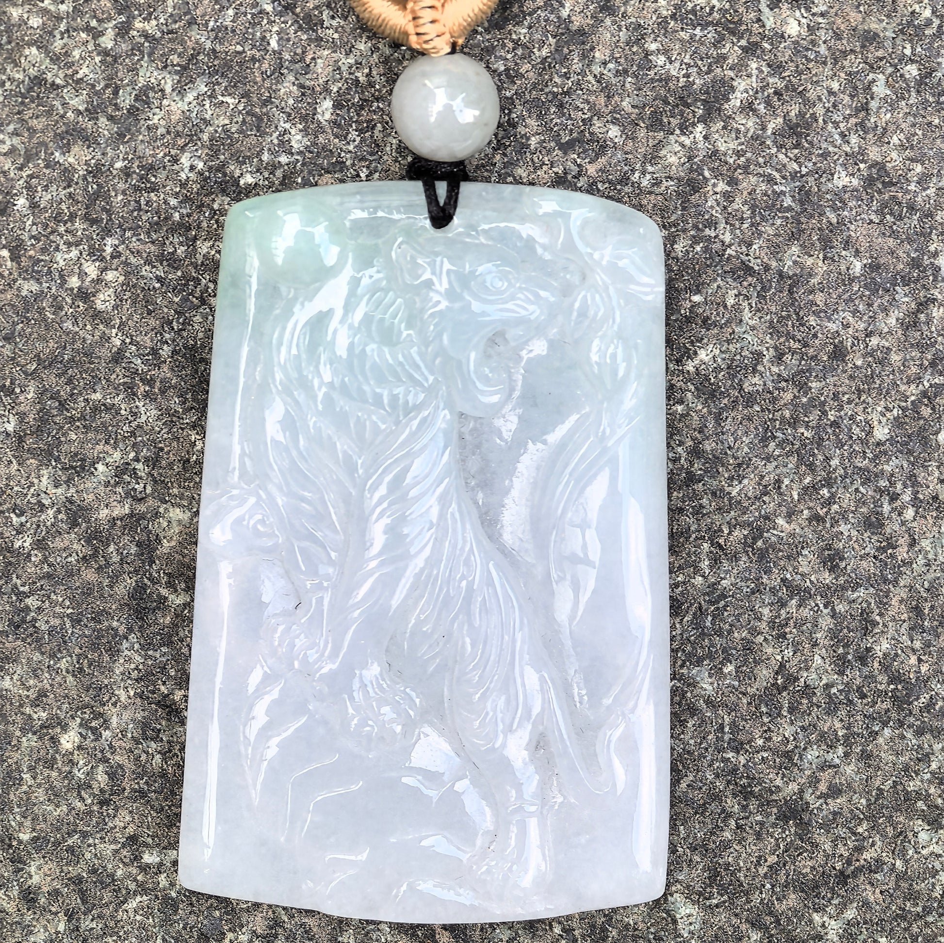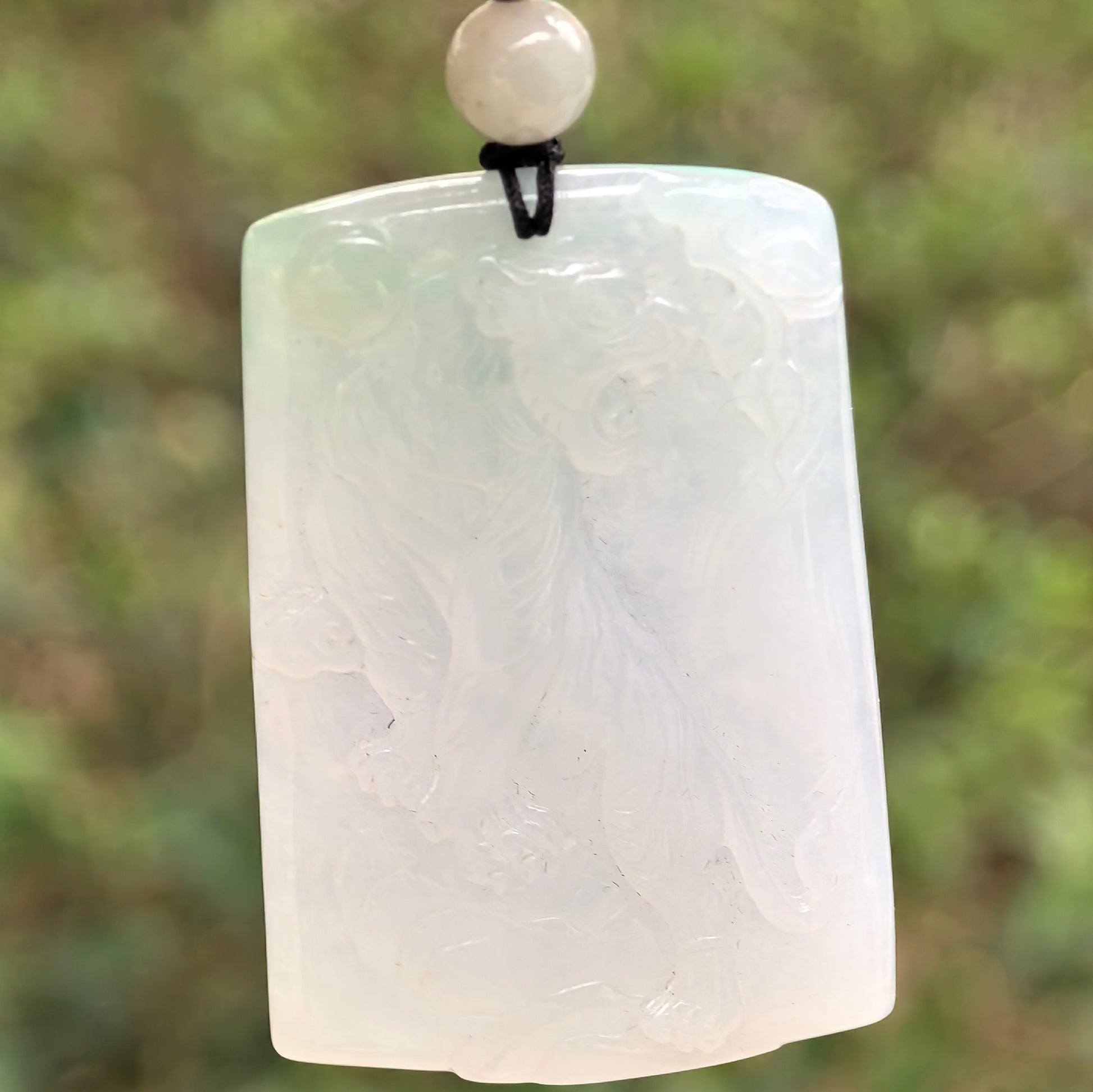 Natural Grade-A Jadeite Glutinous Icy Tiger Plaque Pendant with a Hint of Green · Burmese Jade
