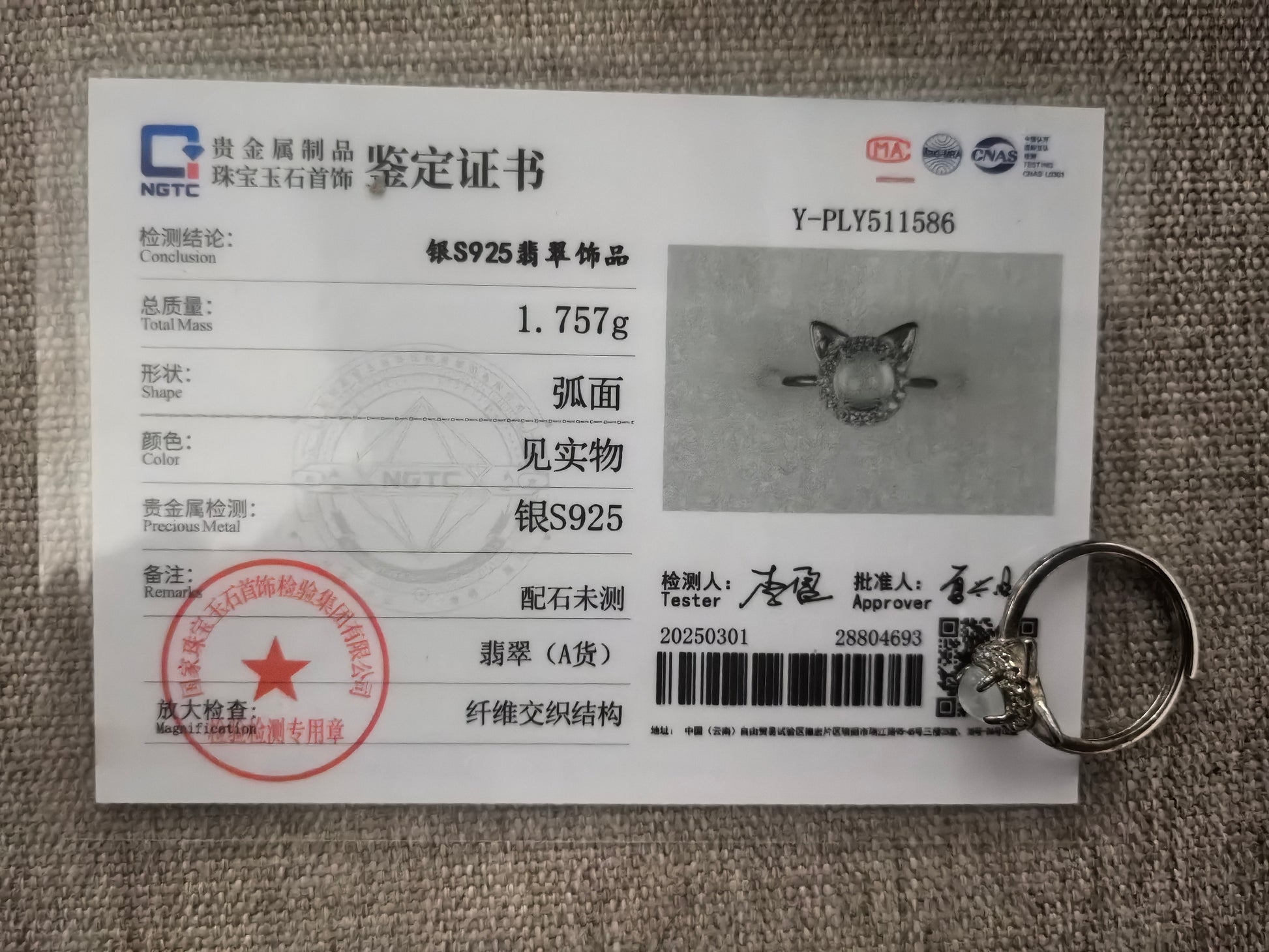 If you like genuine jade in a bright, icy white tone and prefer a playful, youthful design, this silver-set cat ring is a practical, comfortable choice with NGTC-backed authenticity.