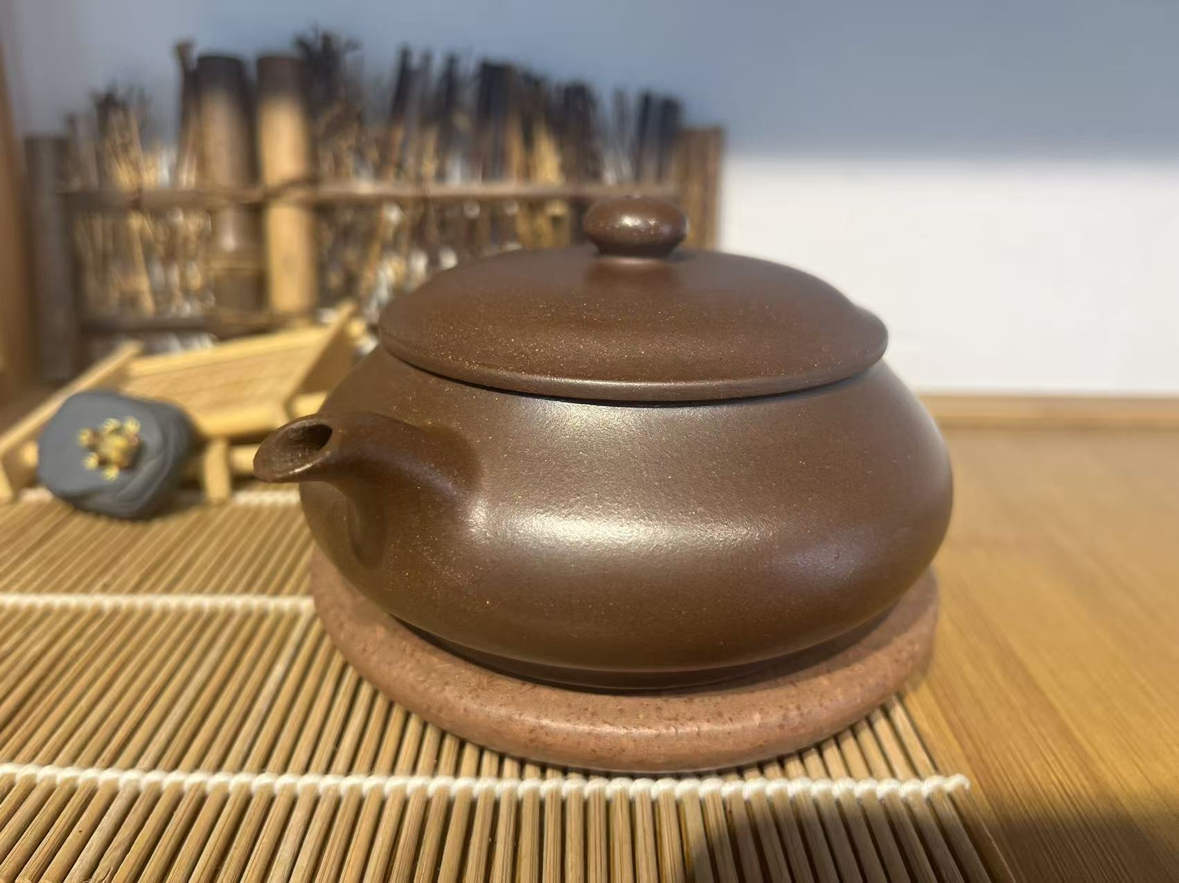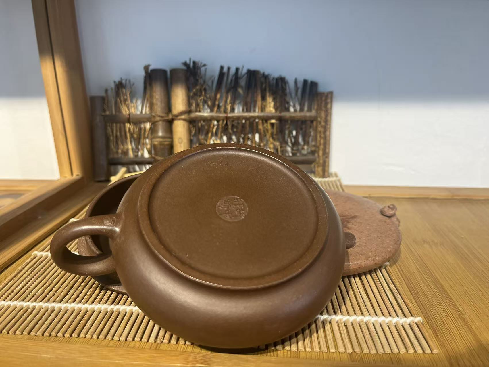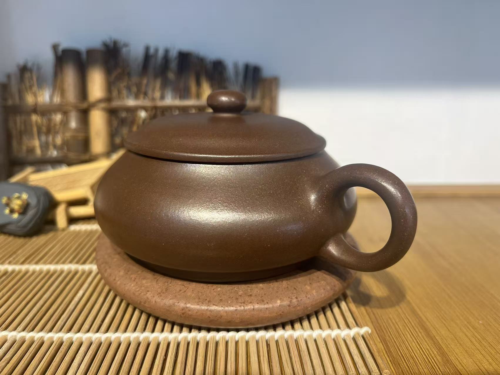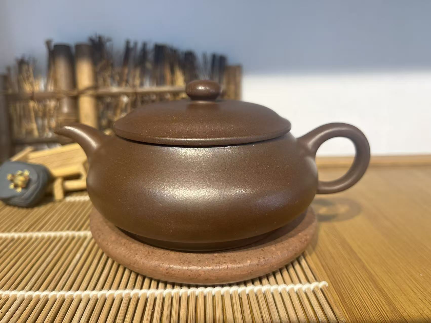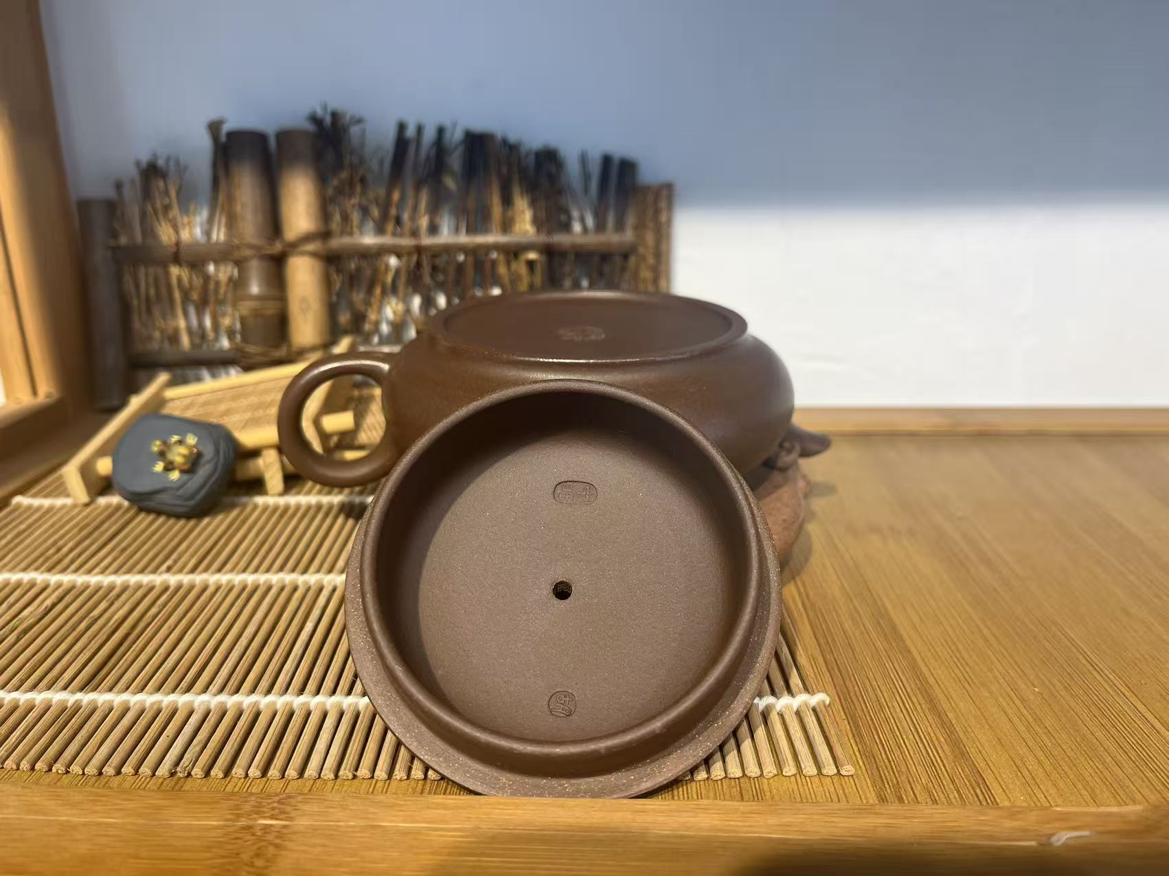 Yixing Zisha Teapot 220ml – Handmade Flat Round Purple Clay Teapot